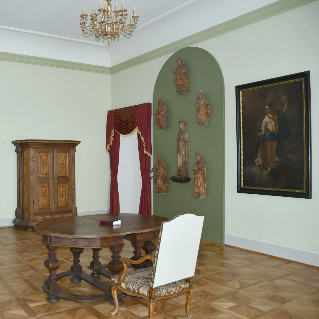 V letošním roce si připomeneme 30 let od slavnostního otevření expozic starého a moderního umění v barokní radnici. Budova po dlouholeté generální rekonstrukci zazářila na náměstí jako drahokam a překvapila i rozsáhlými a kvalitními sbírkami. V duchu dobové estetiky byly všechny prostory bíle vymalovány, ale čas šel dál. Od loňského roku probíhají v 1. patře barevné výmalby interiérů, doplňování textilních prvků, obnova původních podlah a nový způsob instalace exponátů, včetně využití historického nábytku. Pozornost přitahuje nejenom barokní kaple, ale i nově obnovená gotická kaple ukrytá ve věži. V 1. patře je představeno staré umění včetně evropsky proslulé obrazárny hrabat z Hohenemsu a ve 2. patře moderní umění – počínaje krajináři Vysočiny a konče nejnovějšími díly současnosti.